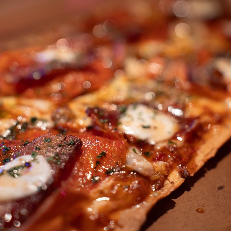 Pepperoni, Prosciutto, Sausage, Bacon Strips, Fresh Mozzarella, Shredded Provolone, Marinara Base