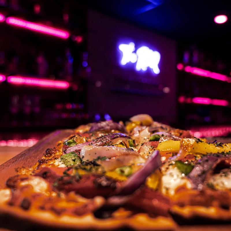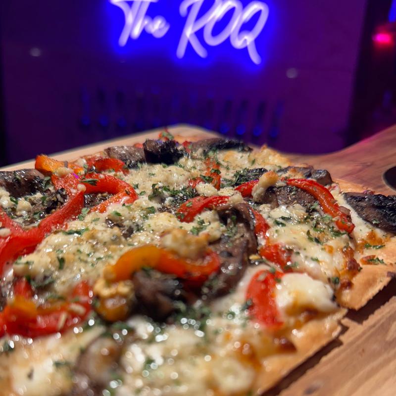 Portobello Mushrooms, Roasted Red Peppers, Garlic Onions, Shredded Provolone, Smoked Bleu Cheese, Garlic Oil Base